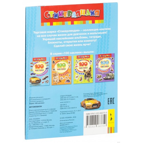 В набор вошло 100 красочных наклеек с современными марками и моделями автомобилей. Ты можешь украсить ими тетрадь, блокнот, открытки или комнату, наклеить в альбом или поделиться с друзьями. Яркие и красивые, они не оставят никого равнодушным!