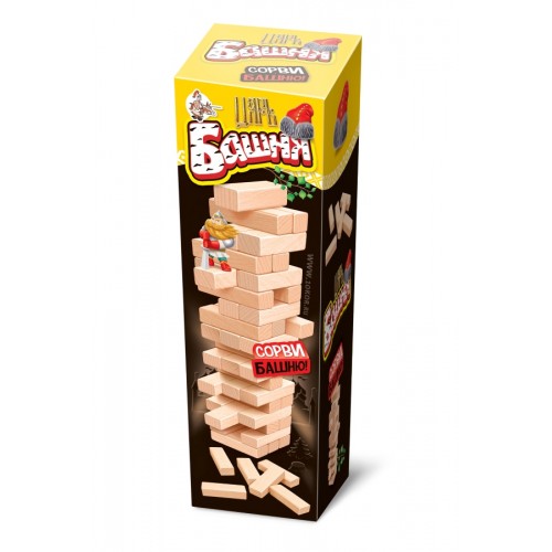 Простая, но невероятно увлекательная игра «Башня» предназначена для любителей настольных игр любого возраста. Набор состоит из 54 цельных деревянных брусков. Каждый брусок обтесан и отшлифован до абсолютной гладкости. Принцип игры достаточно прост. Несколько игроков строят башню, поочередно накладывая бруски один поперечно другому, до тех пор, пока башня не рухнет. Игру можно усложнить, добавив несколько брусков на каждый этаж башни.