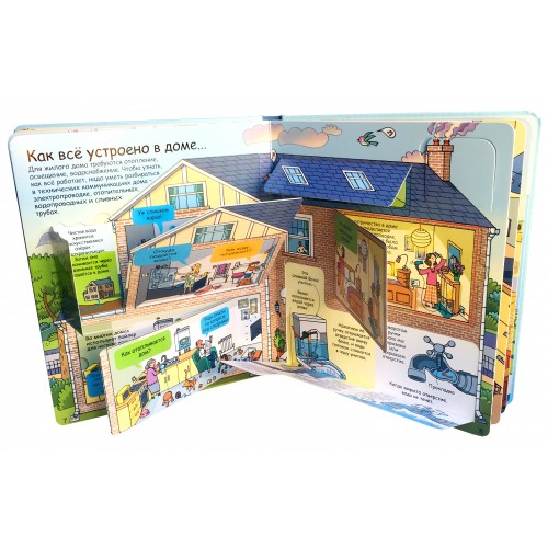 Ты знаешь, как работают разные вещи, ездят машины, плавают корабли и летают самолеты, как строят дома и как устроен водопровод, как работает бытовая техника и почему в холодильнике холодно, какая бывает спасательная с сельскохозяйственная техника? Загляни под створки (некоторые из них двойные) — и ты узнаешь много нового и сможешь рассказать об этом своим друзьям.