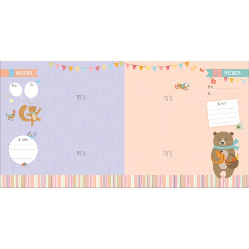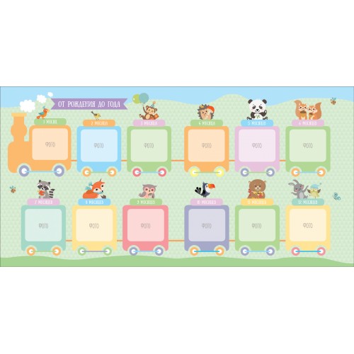 Первая улыбка, первая прогулка, первый шаг — все драгоценные воспоминания о первом годе жизни ребенка бережно сохранит этот альбом. Месяц за месяцем, заполняя его страницы, вы будете радоваться тому, как растет ваш малыш. И потом, годы спустя, будет приятно заглянуть в альбом и снова удивиться этим чудесным превращениям.