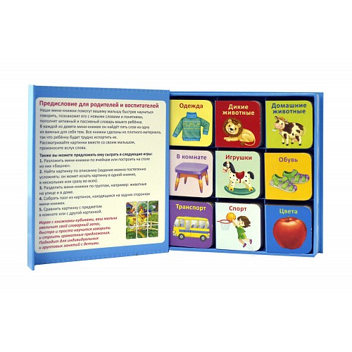 Набор книжек-кубиков — это обучающее игровое пособие для детей. Внутри вы найдете 9 мини-книжек на самые первые развивающие темы, которые будут интересны девочкам. Яркие картинки и подписи к ними помогут малышке познакомиться с окружающим миром, научиться произносить первые слова, а также пополнят его активный и пассивный словарь.