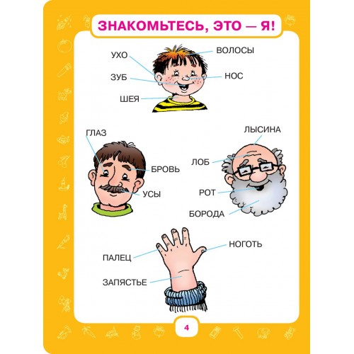 Занимаясь по книжке, юный ученик получит первые представления об окружающем мире, научится понимать речь взрослых, а затем — произносить свои первые слова: названия членов семьи, предметов окружающего мира, животных. Пусть эта книга поможет вашим детям стать умными и талантливыми, учиться весело и с удовольствием!