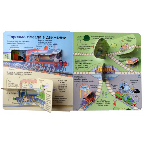 Ты сможешь заглянуть в устройство паровоза, узнать о самых интересных поездах мира, а также познакомиться с историей создания паровозов.